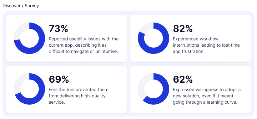 To validate our initial research findings and better understand pain points at scale, we conducted a survey of all 153 members of the national sales team.