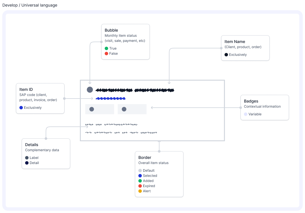 Given the complexity and volume of information—especially within item cards—I needed to design a clear, consistent visual language that could be easily recognized and understood across different workflows. This included: